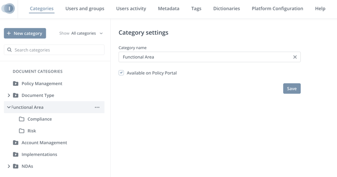 - (Optional): Tick the Available on Policy Portal* box if the category should be visible on the Policy Portal.