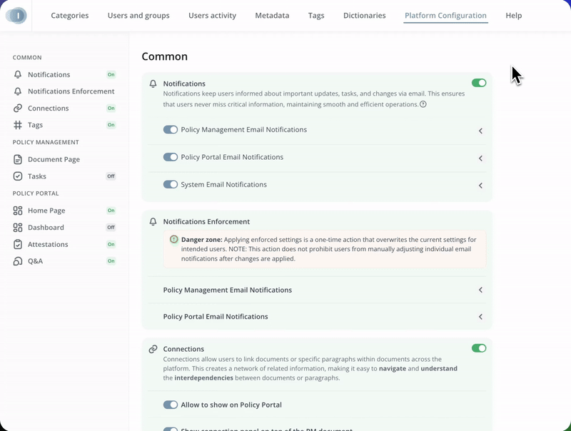 Platform wide changes can be applied across several functionalities so as generally to apply it to all users.
