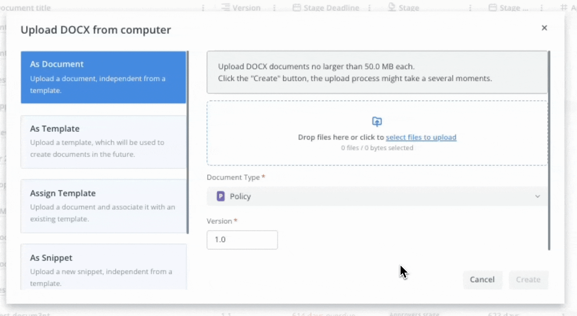 - Find more information on things to consider when uploading a document: Work with Uploaded Document.