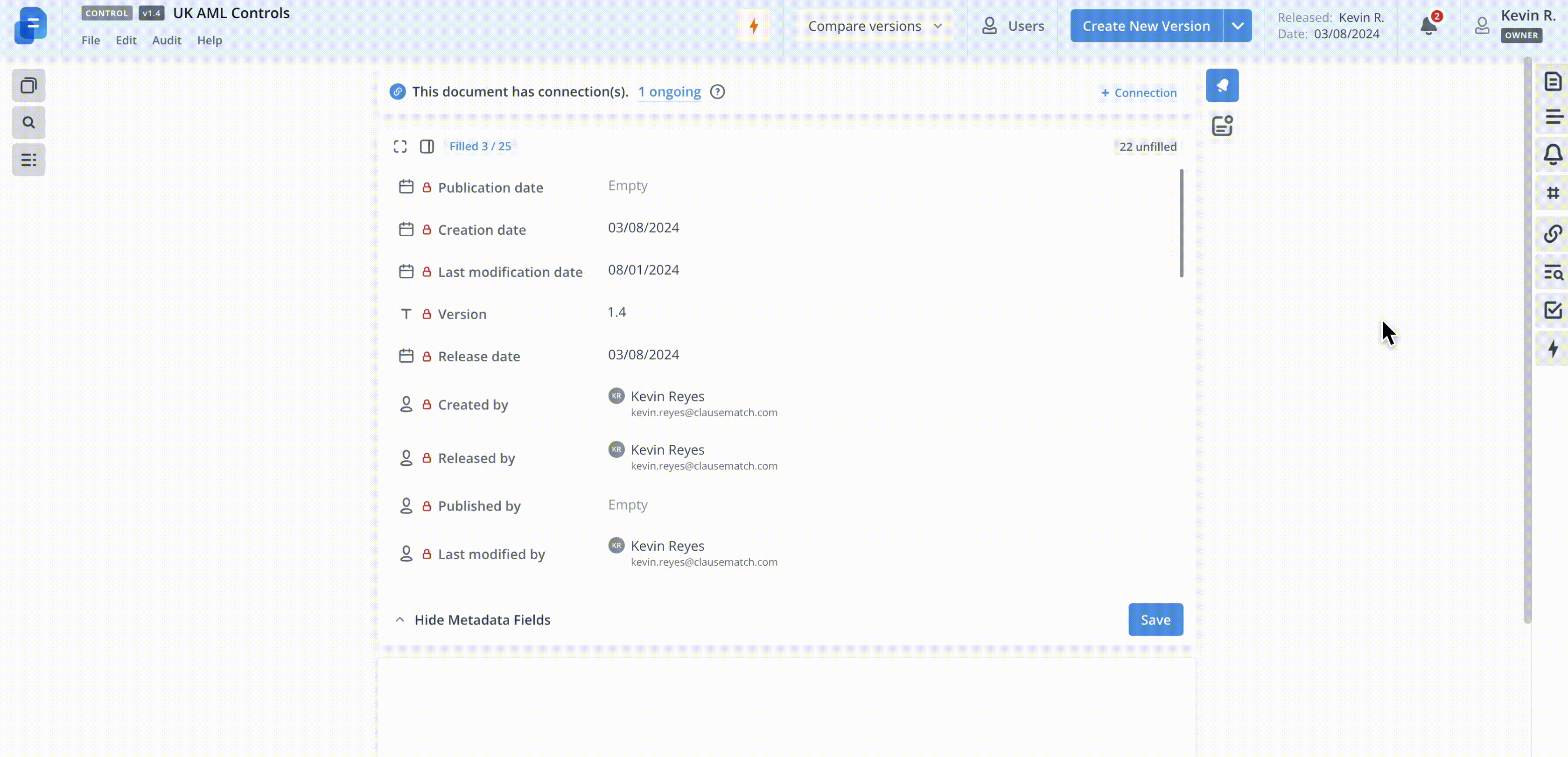 Once the non-material changes were applied, the document can be moved to the Release stage. The document will automatically reflect the latest content of the document on the Policy Management and Policy Portal modules.
