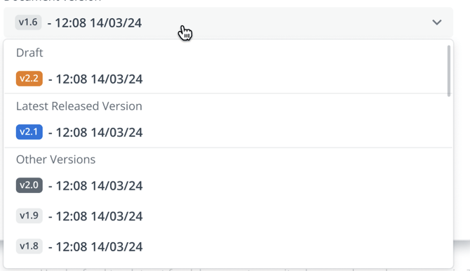 To make it easier to distinguish between types of versions available in a document's version history, we have colored different types of versions: